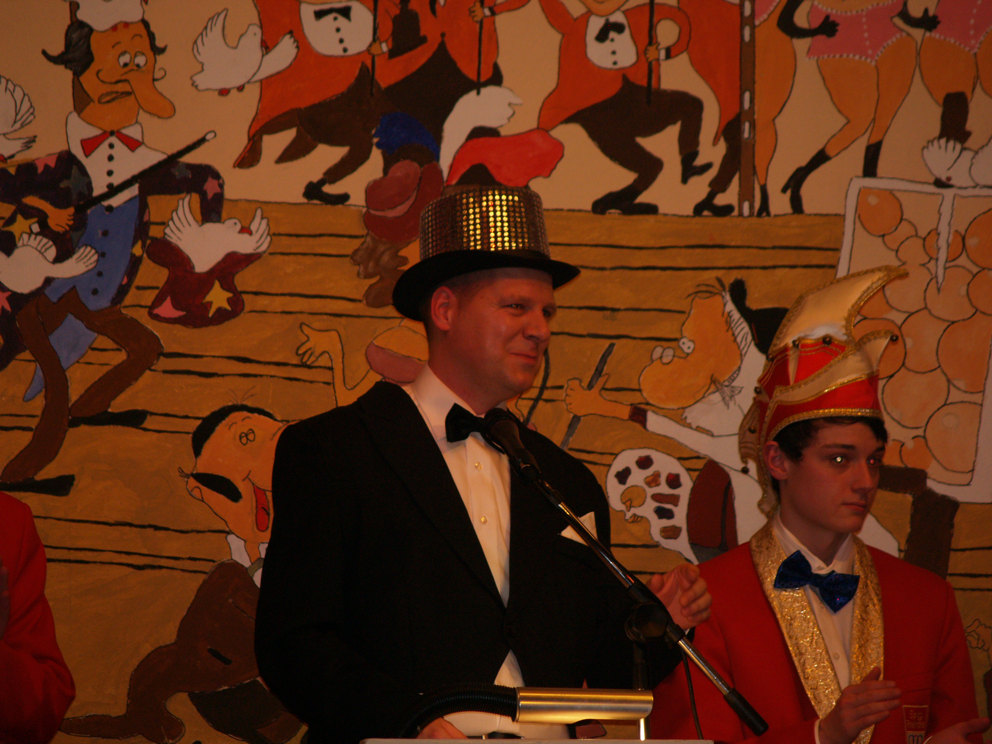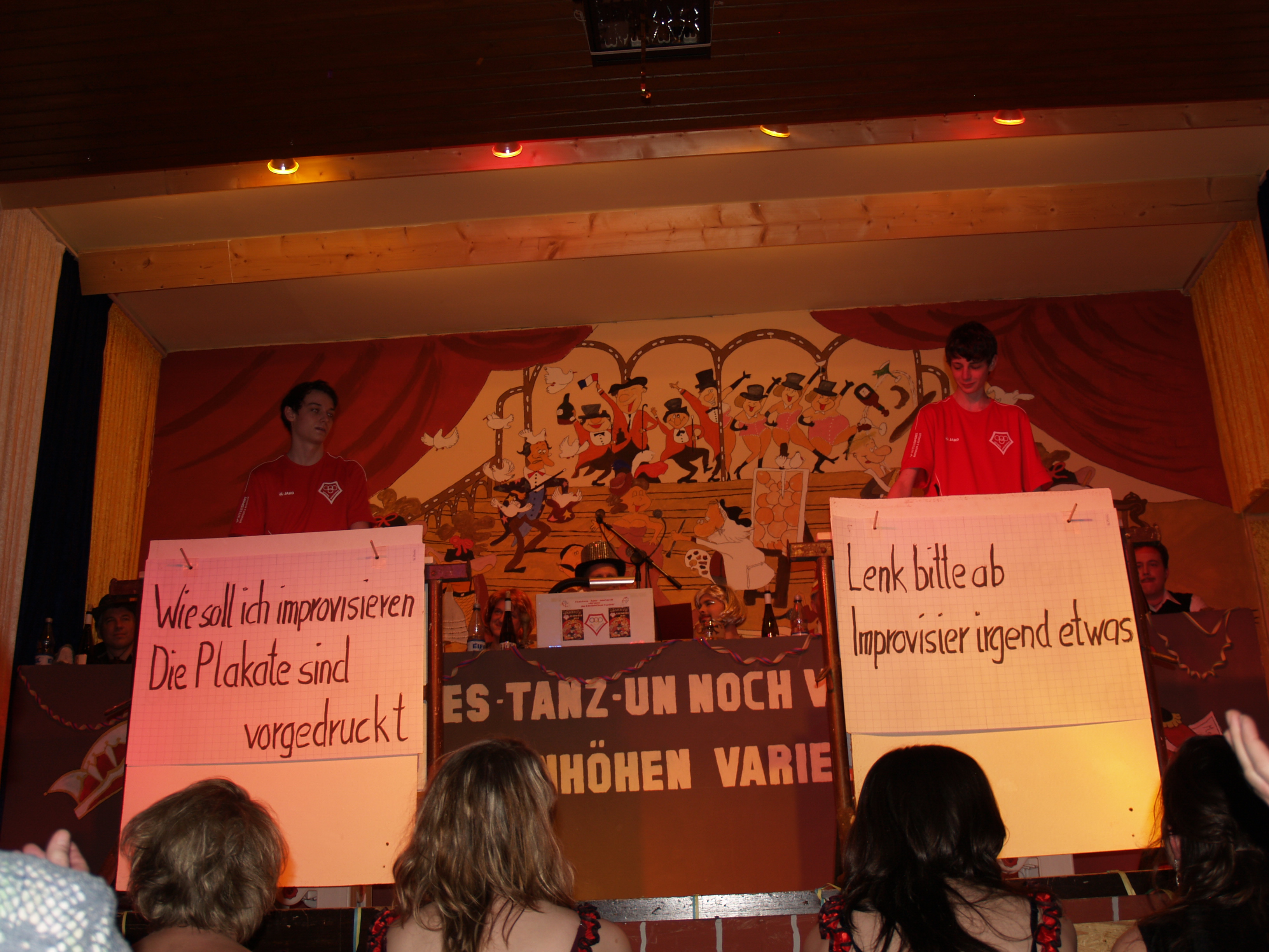 „Die Wätz“ (Konstatin Balter, Lucien Denner, Philipp Schmidt) – eine mittlerweile fest etablierte Nachwuchsgruppe des NCR – zeigten auf ihre eigene Art dem Publikum ein paar Ideen, wie sie ein Theaterstück auf einer Firmenweihnachtsfeier gestalten könnten. Die „Knalldeifel“, ebenfalls Nachwuchstalente des Vereins (Sarah Lambrich, Annika Kapp, Johanna Burger, Leonie Sonne, Angelina Seibert und Lena Jäckel, Leitung: Alina Burger), spielten eine verwirrende Gesprächsrunde beim Psychiater, mit weniger Worten, dafür umso mehr Lachern. Die Stimmung im Saal wurde mit dem Gardetanz der „Knappe Reggelscher“ zum Kochen gebracht (Alina Burger, Soraya Graeff, Friederike Hanß, Laura Heß, Luisa Hüttner, Leonie Kapell, Jasmin Schrupp, Trainerin: Raffael Müller). Mit flotten Sohlen schwangen sie ihre Tanzbeine und brachten so manch einen im Publikum zum Schwitzen.