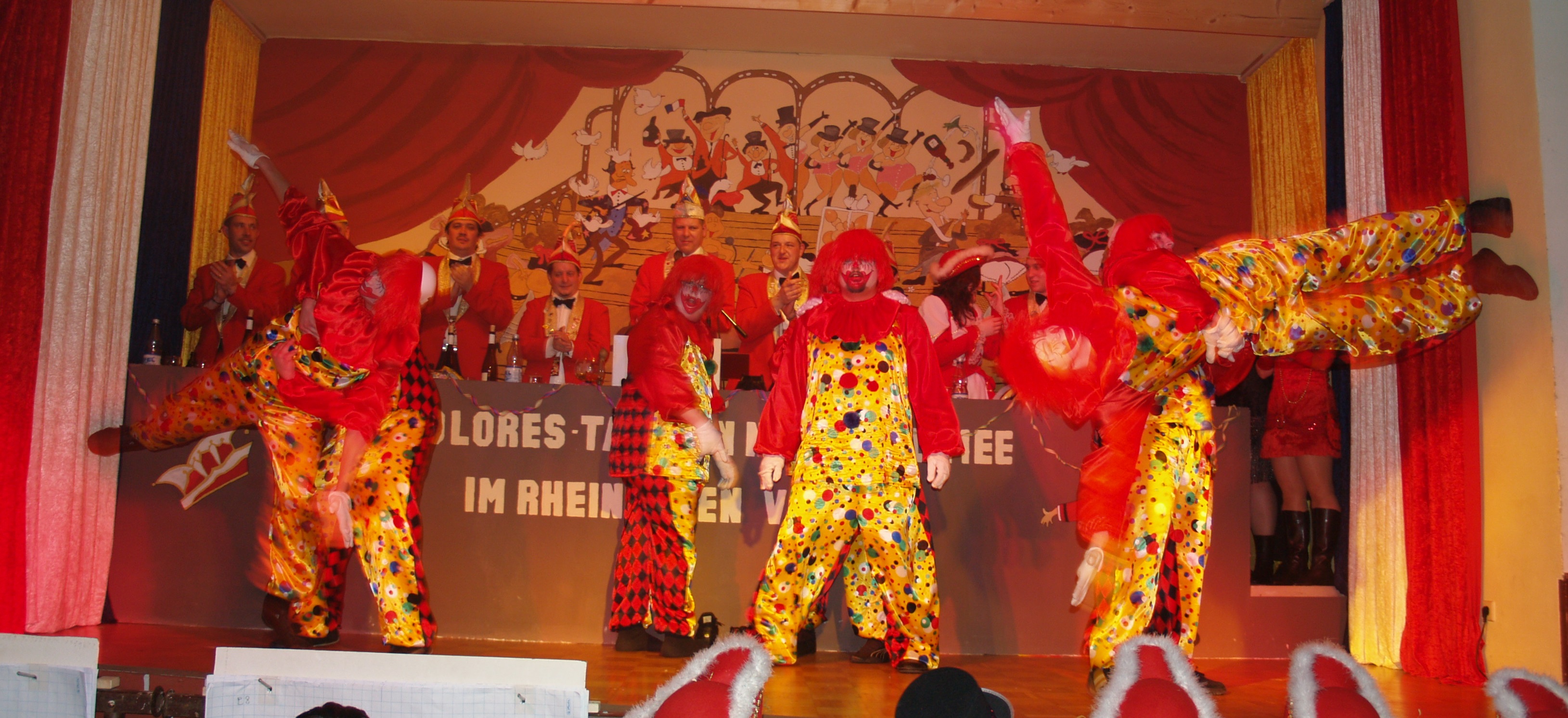 Auch 2011 zeigten die Fassenachter der Rheinhöhe, dass sie verdient zu den Hochburgen des mittelrheinischen Karnevals gehören. Unter dem Motto „Kokolores, Tanz und noch viel mee, im Rheinhöhen Variete" lieferten die Aktiven drei gelungene Sitzungen in Perscheid ab. Nachdem die Gardegruppe der Knappen Reggelscher das närrische Publikum mit einem passenden Outfit und Gesang bereits eingestimmt hatte, zog der Elferrat unter dem Vorsitz des Präsidenten Ralf Günster pünktlich um 19.11 Uhr in das Perscheider Varietehaus ein. Nach der Vorstellung der närrischen Elf begeisterte die Bambinigarde mit einem flotten Garde tanz das Publikum. Es folgte das in Versen gehaltene Protokoll, vorgetragen von Silke Hüttner, die humorvoll von den Geschehnissen der Rheinhöhengemeinden aus dem vergangenen Jahr berichtete. „Babbel nit" hieß der nächste Vortrag, bei dem kein Wort gesprochen wurde. Vincent und Benedikt Hastenplug zeigten mit ihrer „ Zettelwirtschaft", dass man auch per Zettel kommunizieren kann.Eine Persiflage des bekannten Kasperletheaters zeigten die „ Bleedmänner", die nun schon seit Jahren mit ihren chaotischen Beiträgen zum festen Bestandteil der Sitzungen geworden sind. Kasper (Mark Federhen), Seppl (Roland Dietz), Teufel (Jessica Oldach), Krokodil (Patrick Günster) und Polizist (Uli Hastenplug) wurden mit dem Orden belohnt.