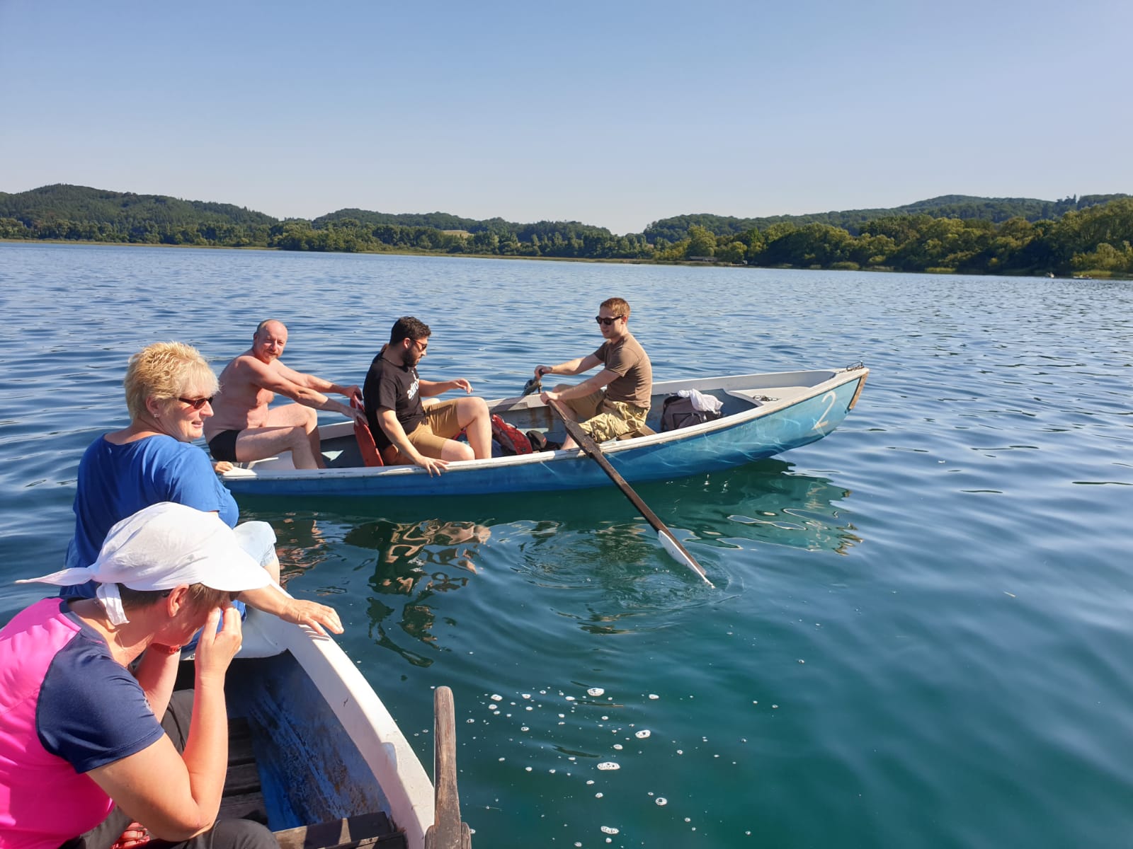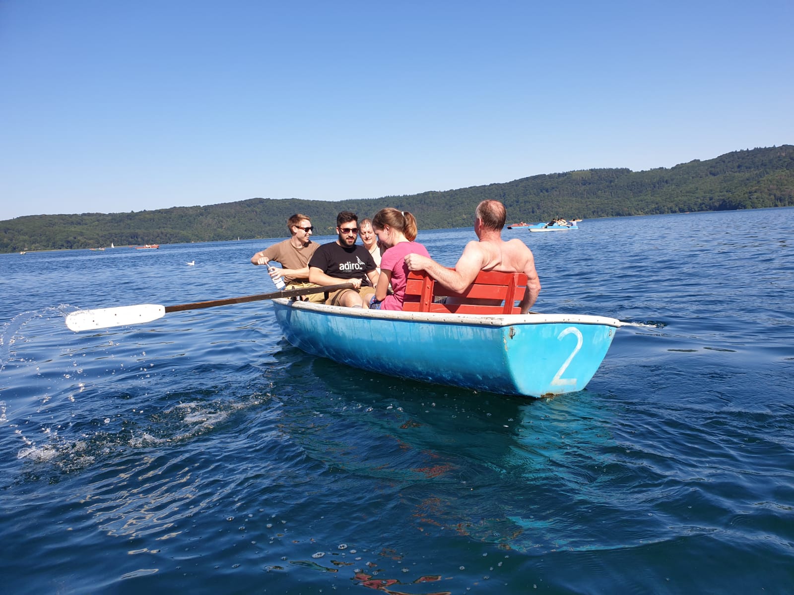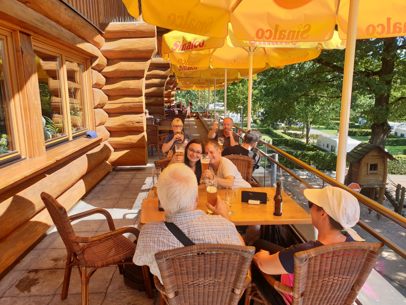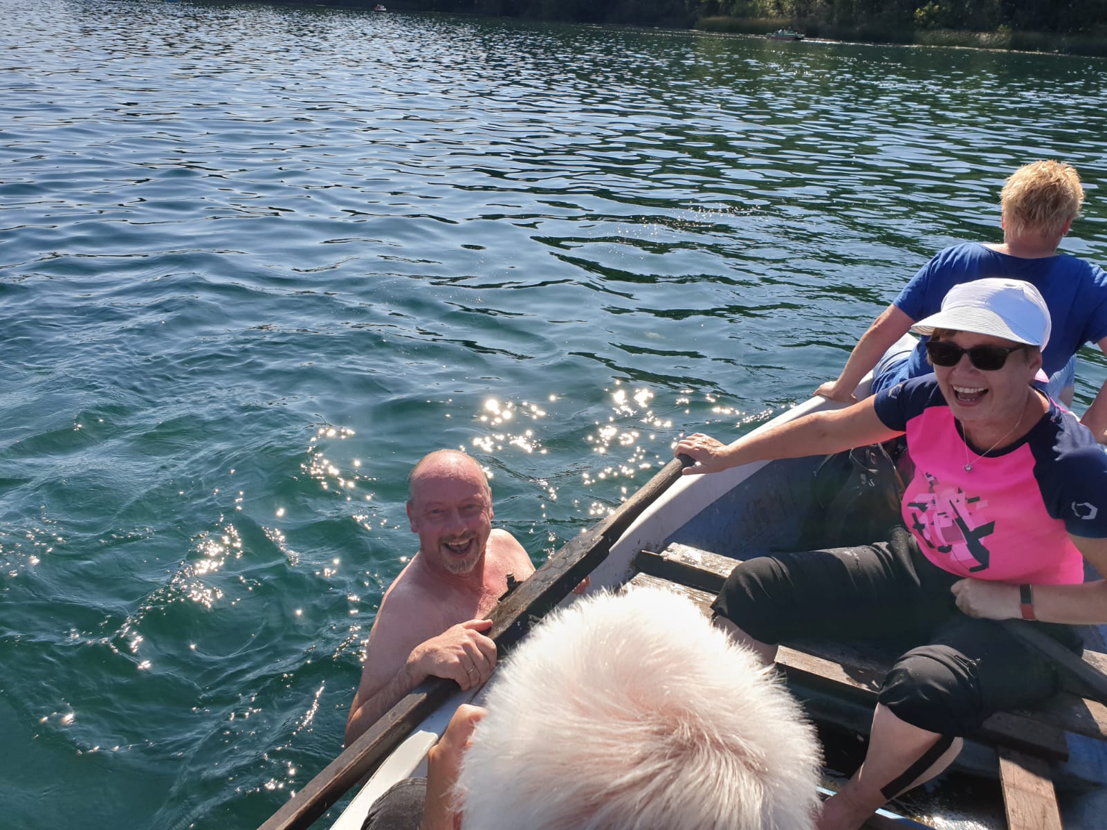 Und dann gab es eben statt Wanderstecke und Klammwanderung das Alternativprogramm: Boodsche fahre, schwimme und Biergarten mit Seeblick.
